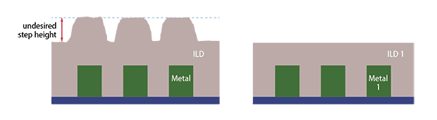 圖2. CMP前后在金屬線上的內(nèi)部電介質(zhì)橫截面圖