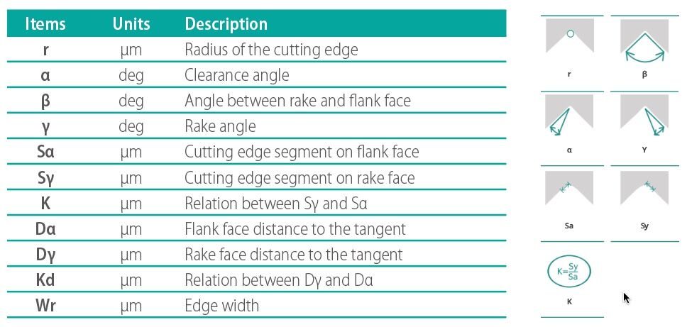 最后,另一個感興趣的參數(shù)是切削工具邊緣的粗糙度。該信息由軟件自動以許多常見和標準參數(shù)的形式提供,如Ra、Rz和Rq等。在這個特定的情況中,切削刃的Ra為0.05微米。