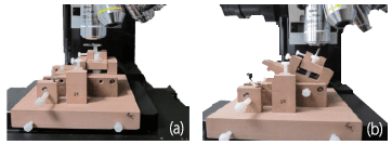 利用專門開發的具有 3 個自由度的牙種植體 處理和定位裝置,我們可以正確地定位不同的位置(圖 3)。