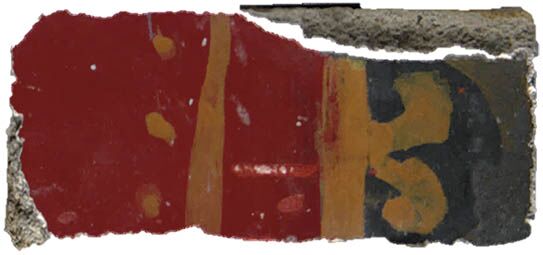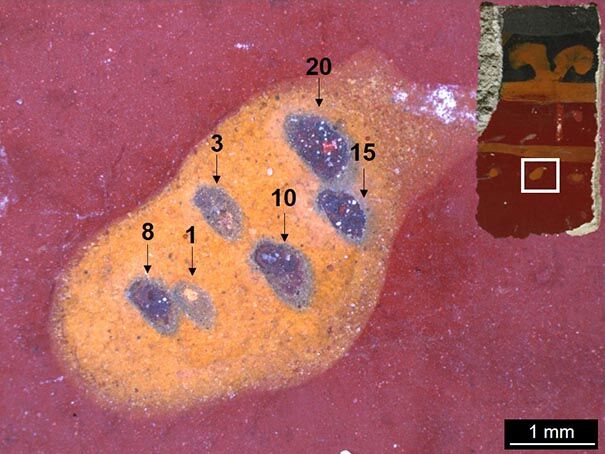 圖 3.覆蓋紅色顏料的黃色裝飾層上的分析點位置