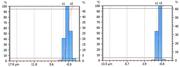 圖 4.在不合規(guī)(左)和合規(guī)表面(右)中,Abbot-Firestone 曲線以紅色顯示。它是表面輪廓高度的累積概率密度函數(shù),可以通過積分輪廓軌跡來進行計算