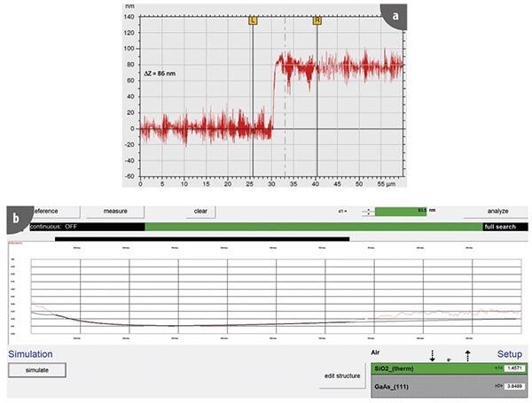 我們現在將 3D 光學輪廓儀 S neox(光譜反射法模式)作為測量 SiO2層厚度的一種快速且簡便的方法。使用簡單砷化鎵作為參考,我們使用這種技術可獲得 1 nm 的精確度,并且此過程僅需要幾秒鐘時間即可完成。