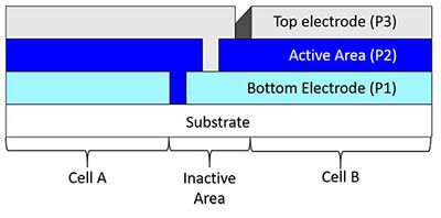 若要單片串聯(lián)器件,需要執(zhí)行三個(gè)模式化步驟(以下稱為 P1、P2 和 P3,如圖 1 所示)。 P1:電隔離底部電極; P2:連接頂部和底部電極;