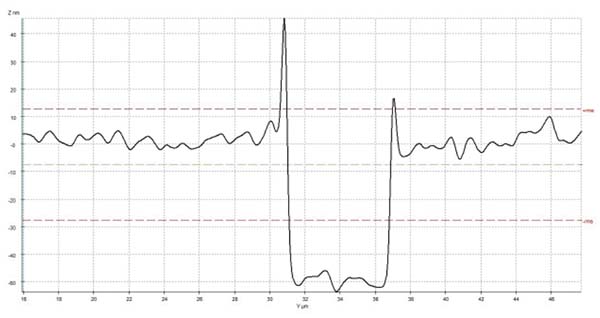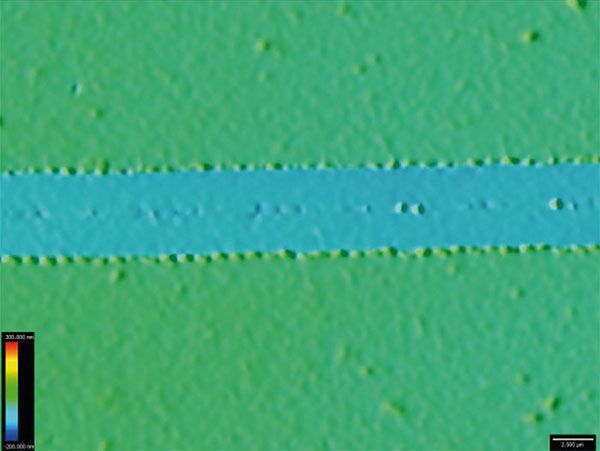 使用 S neox共 聚焦功能和 150X 物鏡,可以監(jiān)視寬度為幾微米,深度約為 100 nm 的激光筆跡線。該儀器可通過測(cè)量薄膜層來檢測(cè)非選擇性燒蝕。