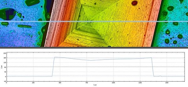 隨后處理三維輪廓,以獲得諸如晶體高度(和厚度的近似值)和突出特征等信息。