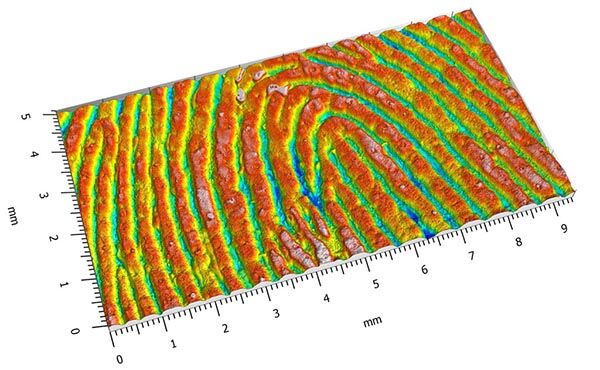 所測樣品是指尖皮膚的復制品。在這個例子中,在測量過程中難以完全保持手指絕對靜止,因此需要使用測量復制品的間接測量方法。目的是獲得用于模擬皮膚微觀幾何形狀的信息,以便創建簡化的虛擬模型。模型被用于有關瞬態振動從手持式設備(例如沖擊扳手和鑿子機)經由皮膚傳播到發生損壞的神經的有限元分析 (FEA) 中。這些振動會導致稱為“白手指”的醫療狀況,也是一種常見的工作相關健康問題。在這項由政府資助的項目之前,尚沒有針對此特定目的皮膚微觀幾何形狀表征研究。