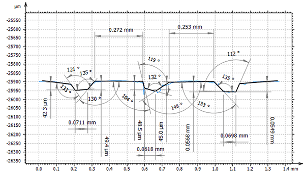 圖3. 使用 SensoMAP 進階輪廓模塊評估樣品幾何形狀的示例