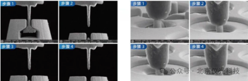 納米力臺拉伸過程(左) 納米力臺壓縮過程(右)