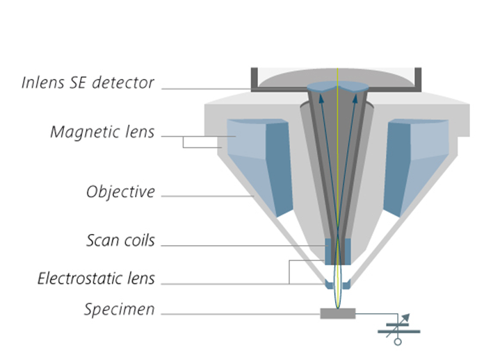- Gemini鏡筒內設置的探測器,可確保信號的高效收集,可同時收集二次電子(SE)和背散射電子(BSE)信號。