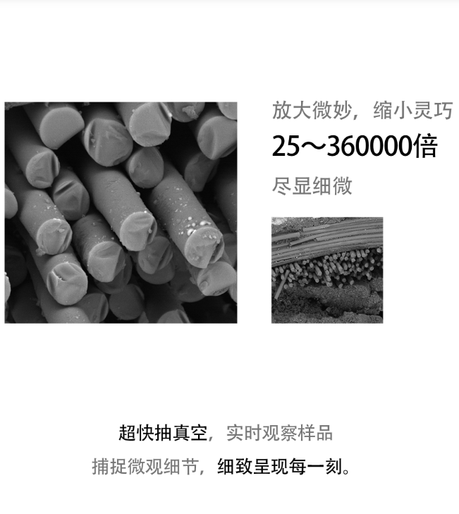 ▲ 超高分辨率:極限放大倍數達到36萬倍,分辨率4nm@20kV。