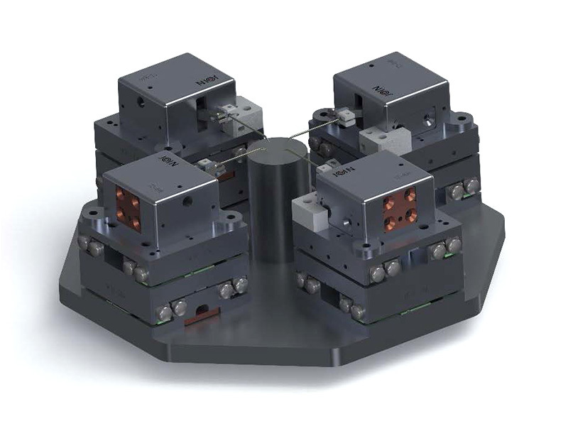 三軸探針臺由三個單軸運動臺組合而成。一SEM腔體內可安裝多個三軸探針臺。平上可安裝電學探針、光纖探針、納米鑷子、金剛石納米力壓頭、顯微注射器等各類操縱和測量頭,實現微納操縱和測量的目的。
