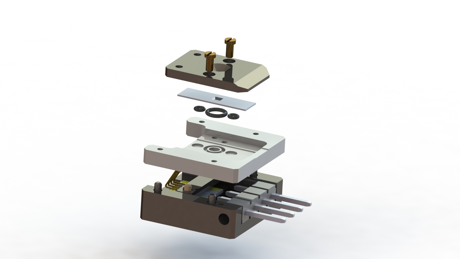 PicoFemto掃描電鏡原位液體-電化學(xué)測量系統(tǒng)采用全新的O圈輔助密封設(shè)計,攻克了以往原位液體解決方案裝樣困難的問題。實驗中,樣品被密封在很薄氮化硅薄膜覆蓋的液體池內(nèi),池內(nèi)可以承載一個大氣壓。芯片電極聯(lián)通外接電路,從而在掃描電鏡中搭建一個液體-電化學(xué)測試環(huán)境。