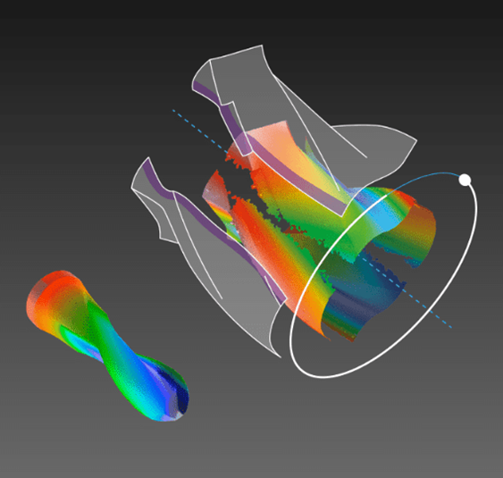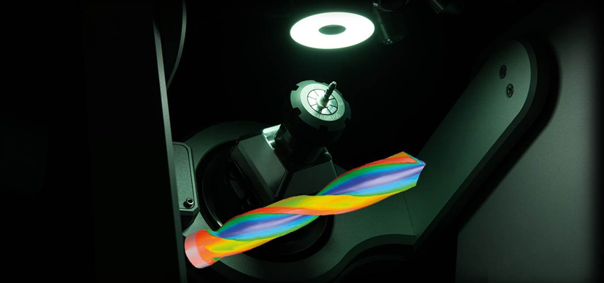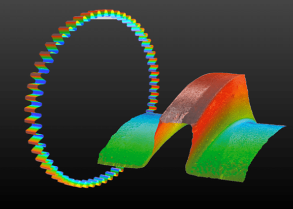 S neox Five Axis能夠旋轉樣品,在圓周上相同高度的位置測量一系列3D形貌。SensoFIVE 軟件合并相同高度的一系列單個3D形貌信息,得到高精度的環形樣品表面的精確3D表面。然后合并不同的高度,系統可以在尖銳邊緣和關鍵表面上提供完整的形狀信息。
