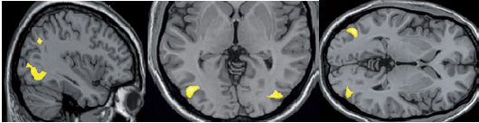標記為黃色的區域是在新的大腦物質被證明已經創建了該地區。