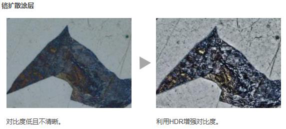 采用先進(jìn)圖像處理技術(shù)的高動(dòng)態(tài)范圍(HDR)可在圖像內(nèi)調(diào)整亮度差異,從而減少眩光。其也有助于增強(qiáng)低對(duì)比度圖像的對(duì)比度。高動(dòng)態(tài)范圍(HDR)功能可用于觀察電子組件的細(xì)微結(jié)構(gòu)并識(shí)別金屬晶界。