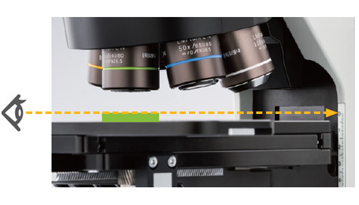 機架上的對焦刻度標尺可以讓操作者快速鎖定焦點。操作者不用通過目鏡查看樣品就可以大致地對準焦點,從而在檢查具有不同高度的樣品時節省了時間。