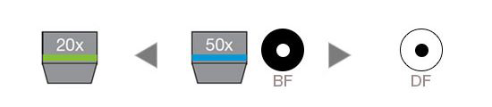 使用正確的孔徑光闌和視場光闌設置能夠獲得良好的圖像對比度,還可以充分利用物鏡的數值孔徑。指示標志可引導用戶根據觀察方法和所用物鏡進行正確的設置。