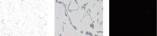 這種顯微鏡觀察技術使用了由一套濾色片(檢偏鏡和起偏鏡)產生的偏光。標本的特性直接影響顯微鏡反射光的強度。這種技術適用于金相組織(比如球墨鑄鐵上石墨生長的形態)、礦石、LCD和半導體材料。