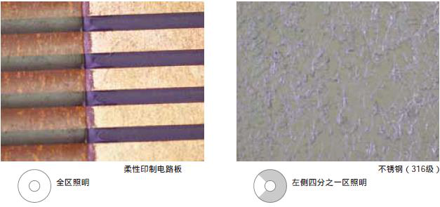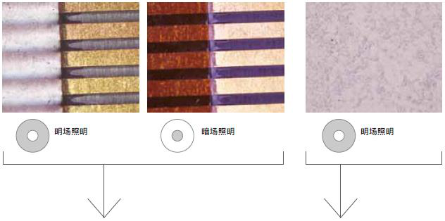 明場將光線直接照射在樣品上,暗場則使光線沿物鏡的周圍從側面照射樣品,突出顯示了劃痕和缺陷。