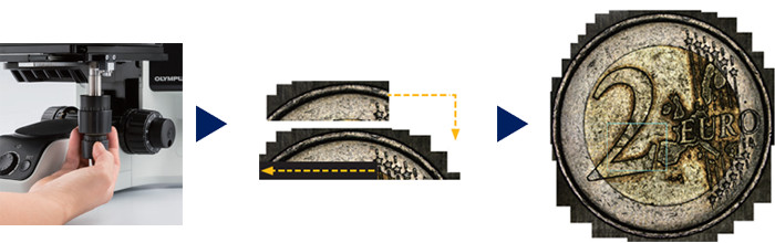 使用外部電動對焦機構時,可以快速獲取EFI圖像,并以3D視圖顯示。獲取的高度數據可用于剖面上的3D測量,或通過單視圖進行3D測量。